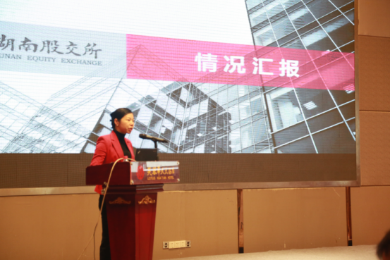 会议传达了资本市场扶贫政策及相关会议精神,并邀请了深圳证券交易所上市推广部副总监兰邦华、湖南股权交易所总经理易卫红就多层次资本市场与IPO审核政策动态、区域性股权市场服务县域经济发展情况等问题进行了专题演讲,并针对大家比较关注的资本市场扶贫政策的有关问题进行了详细的解答。