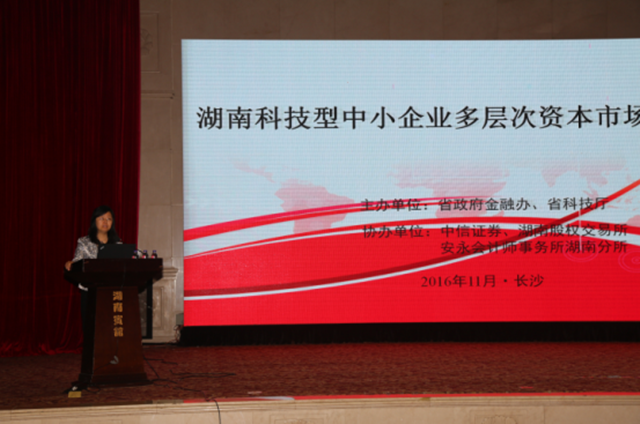 会上,省政府金融办纪检组长李驰、省科技厅副厅长朱皖针对推进科技与金融融合创新作了重要讲话,省科技厅对高新技术企业认定管理及优惠政策进行了解读,会议邀请了深圳证券交易所、全国股转系统、湖南股权交易所、中信证券、安永会计师事务所的专家针对不同层次资本市场的优势和上市挂牌需要关注的要点做了精彩演讲。
