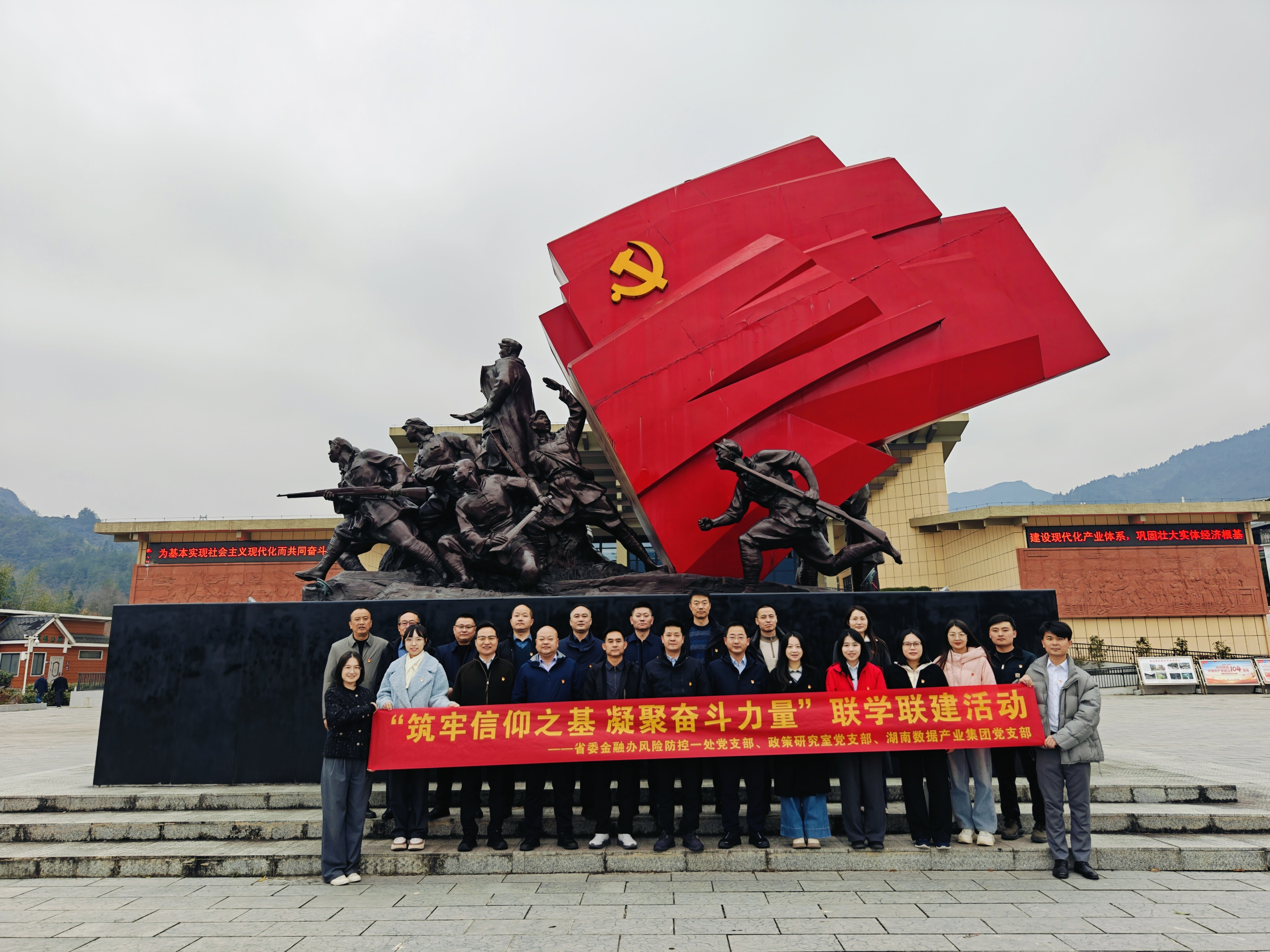 为深入学习贯彻中央关于全面推进乡村振兴的战略部署,推动党建与业务工作深度融合,12月18日至19日,省委金融办风险防控一处党支部、政策研究室(法规处)党支部联合湖南数据产业集团党支部,赴湘西州龙山县开展“筑牢信仰之基凝聚奋斗力量”联学联建活动。活动以红色教育铸魂、产业调研赋能、基层服务暖心为核心,引导党员干部感悟初心使命、强化责任担当,为金融服务乡村振兴凝聚强大合力。
