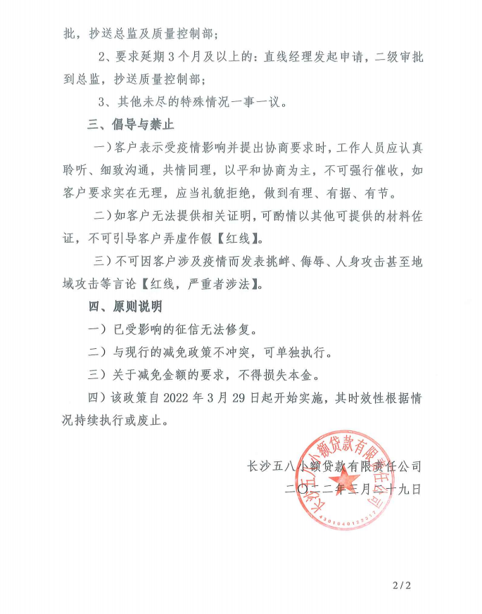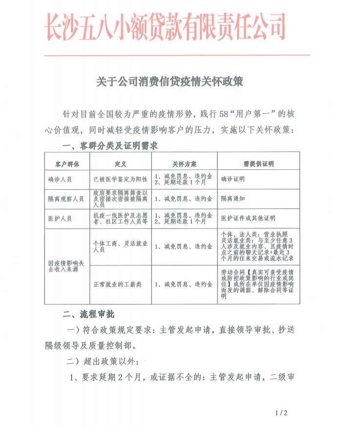 长沙五八小额贷款有限责任公司疫情关怀政策