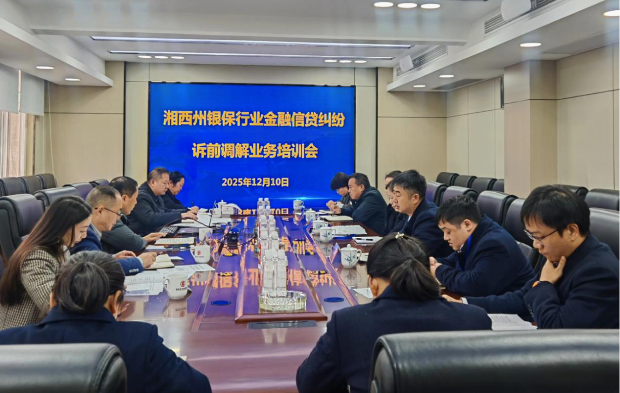 12月11日,国家金融监督管理总局湘西监管分局组织花垣县辖内银行机构,在湖南花垣农村商业银行股份有限公司(以下简称花垣农商银行)举办了湘西州银保行业金融信贷纠纷诉前调解业务培训会。会议邀请了花垣县人民法院领导及负责诉前调解的法官前来指导工作,工商银行、农业银行、建设银行、邮储银行、湖南银行、长沙村镇银行等县域金融机构相关业务骨干参会。