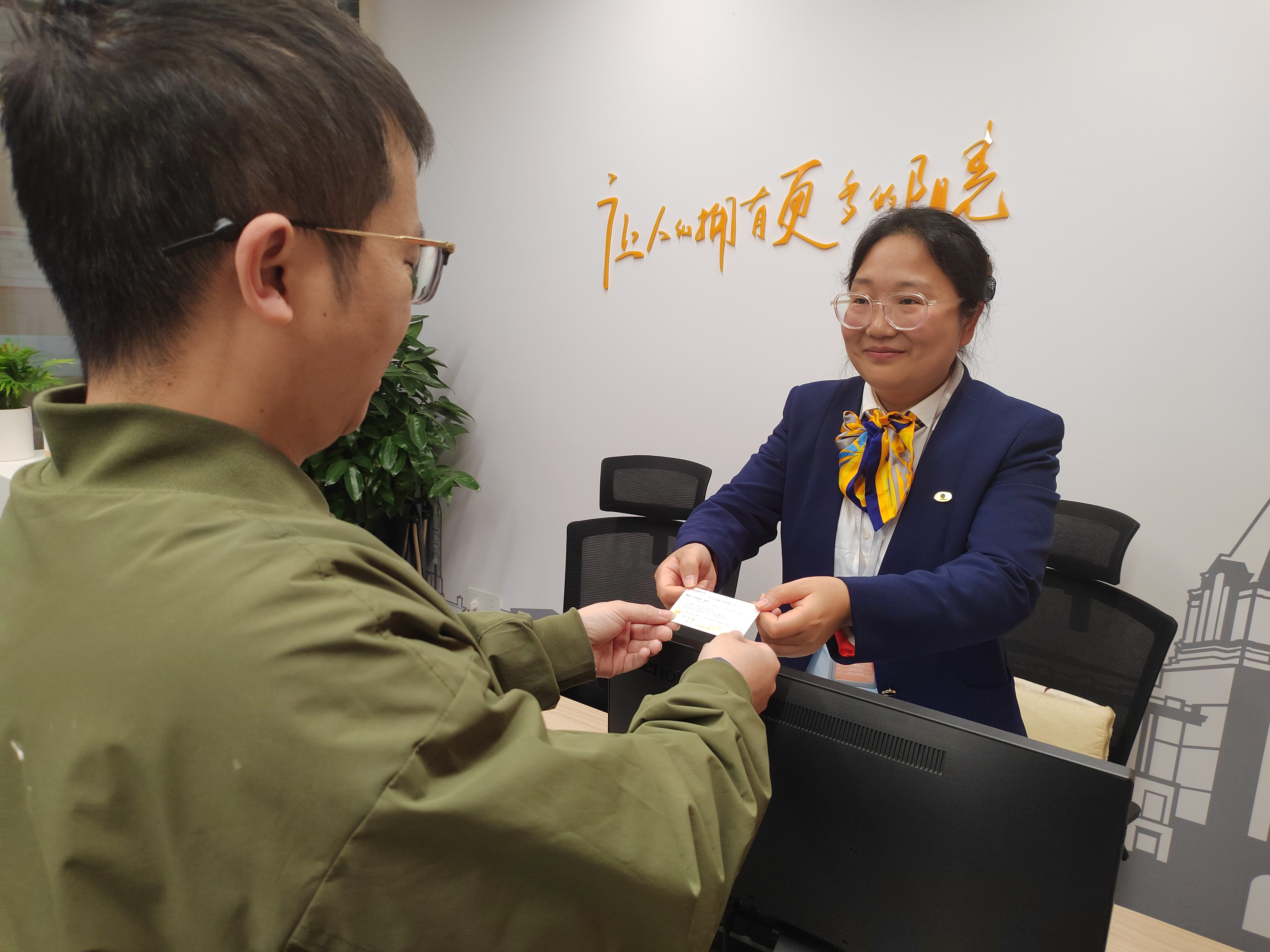 阳光财险长沙中心支公司工作人员为客户递上风险提示“微光卡”