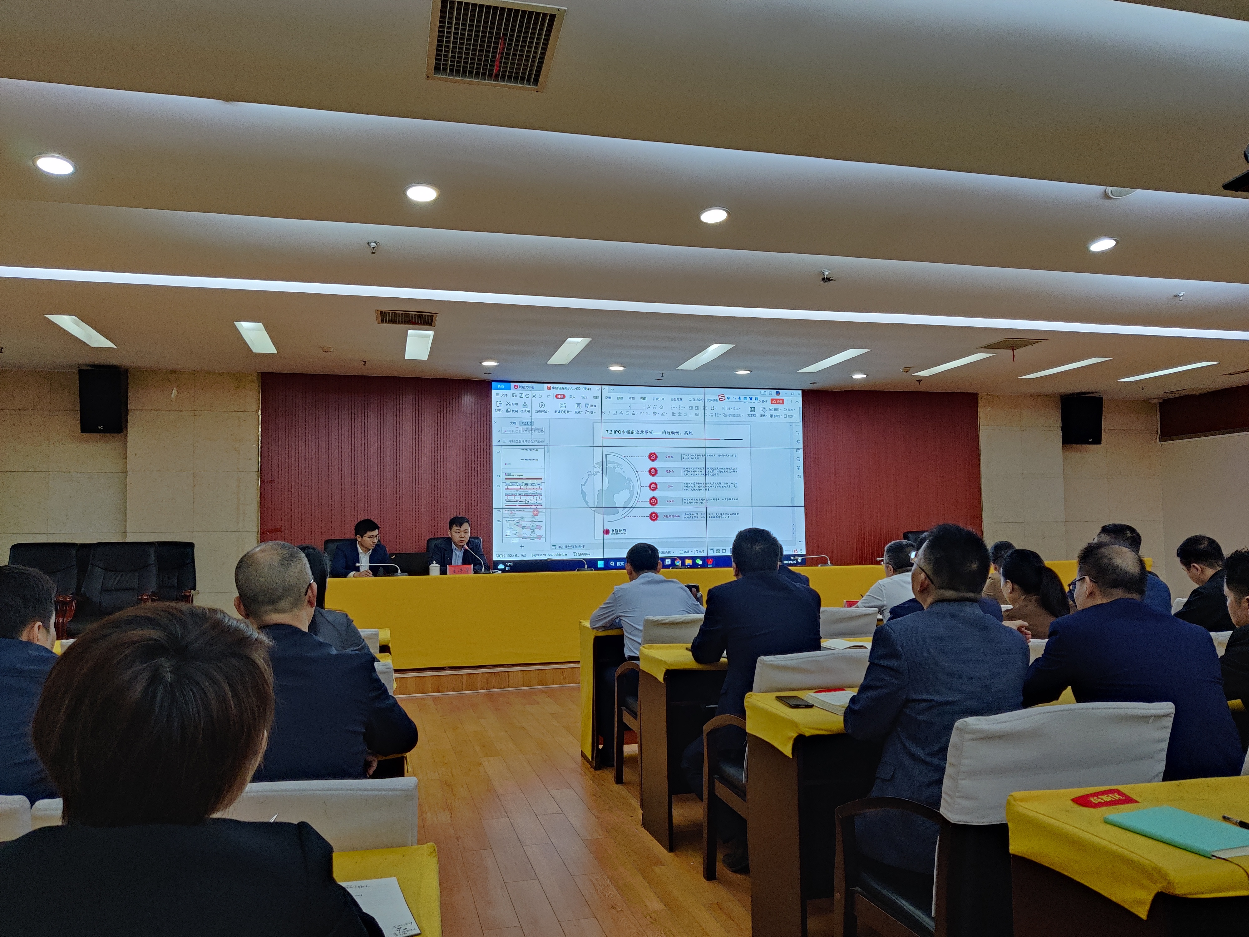 会上,中信证券全球投资银行委员会夏武勇总监和中信证券全球投资银行委员会何广锋副总裁就资本市场与企业运作、IPO政策及相关流程进行了专题培训。通过此次培训,各市直单位负责人及参会企业代表深入了解了资本市场相关政策,理清了企业发展规划,加深了对多层次资本市场和企业资本运作方面的认识。
