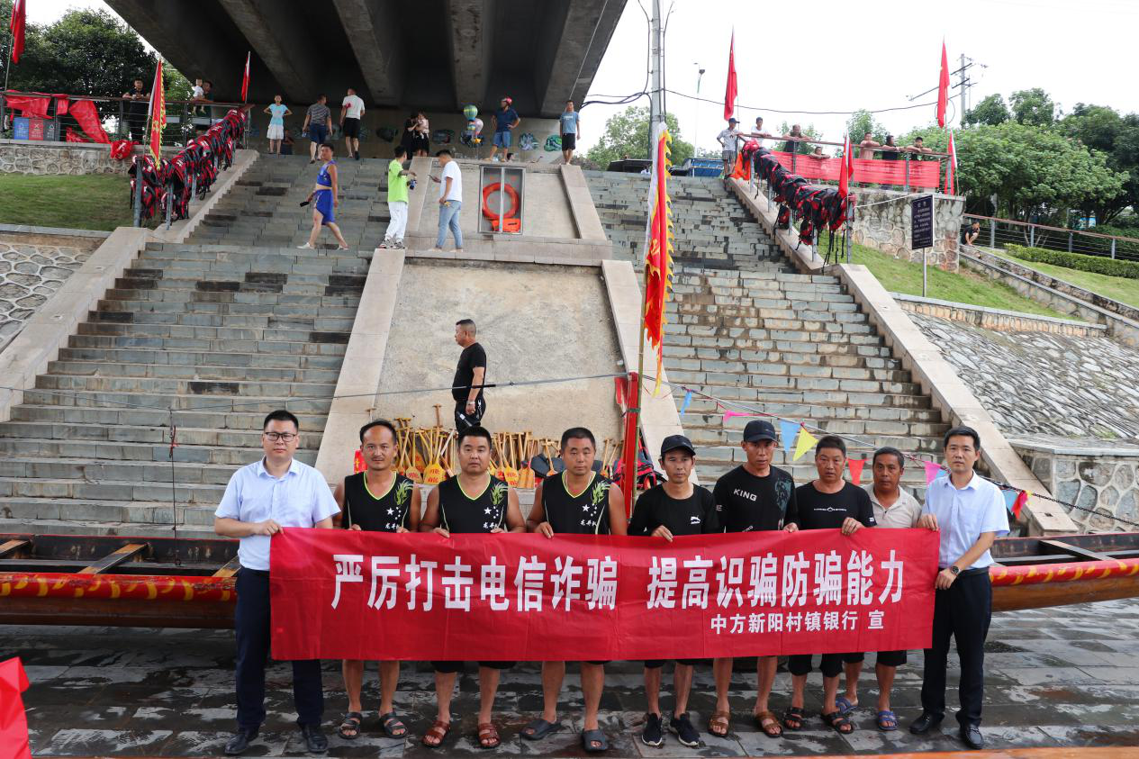 7月2日,由怀化市中方县中方镇民间自发组织的"大端午"龙舟表演活动在舞水河荆坪潘氏宗祠至荆坪大桥河段举行。中方县金融办抢抓居民群众观看龙舟表演人员集中的契机,组织中方新阳村镇银行开展金融知识宣传活动。