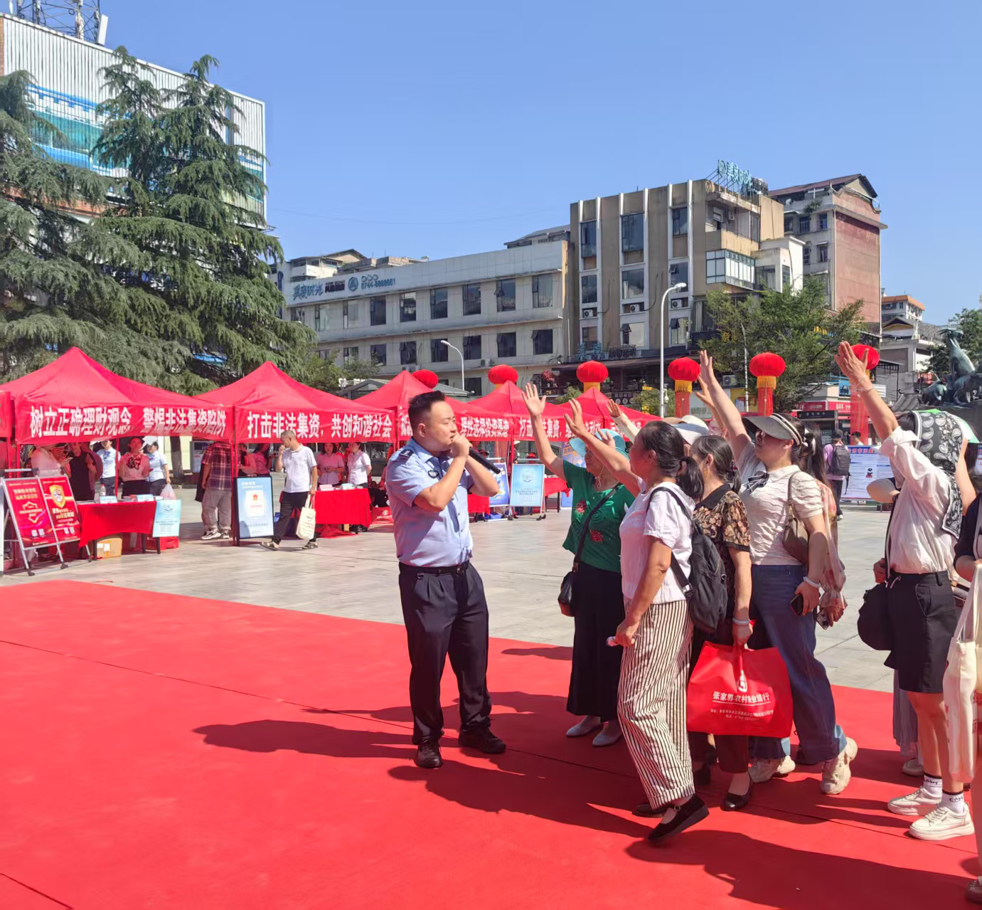 为守护群众财产安全,筑牢金融风险“防火墙”,6月13日,以“守住钱袋子护好幸福家”为主题的2025年防范非法金融活动宣传月暨集中宣传日活动在步行街火热开展。本次活动由张家界市政府办主办、永定区政府办承办,公检法、民政、市场监管、人民银行、金监分局、银行保险机构等部门以及崇文街道办事处、中信建投证券湖南投教基地等单位联动发力,旨在普及金融知识,提升公众识别和防范非法金融活动的能力。