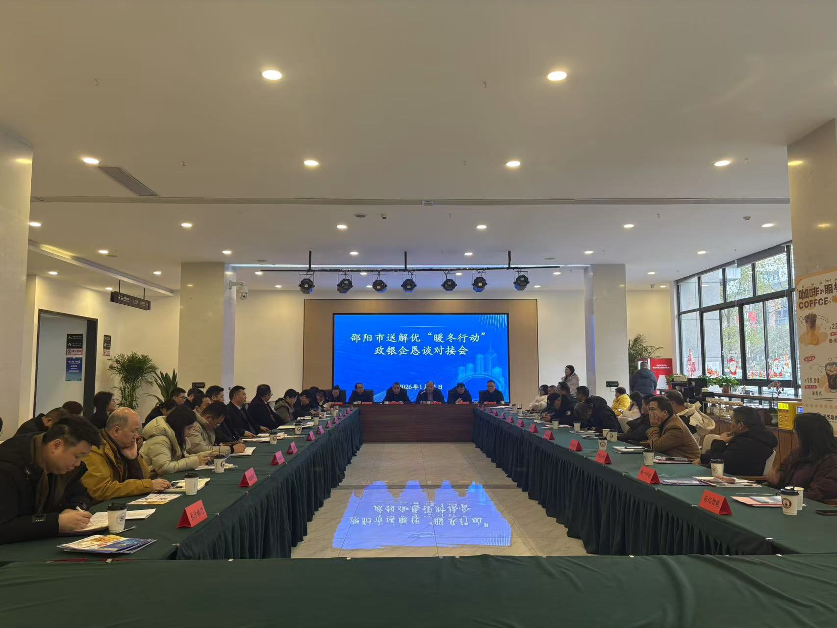1月21日,为抢抓岁末年初企业发展关键期,邵阳市举办了送解优“暖冬行动”政银企恳谈对接会,通过搭建面对面沟通平台,精准对接企业融资需求,切实为企业纾困解难,全力服务实体经济高质量发展。市政府办公室、人民银行邵阳市分行、邵阳金融监管分局及邵阳经开区管委会相关负责人出席并讲话。