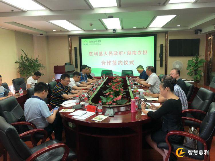 6月19日,慈利县人民政府与湖南省农业信贷担保有限公司在长沙签订合作协议。湖南农担董事长唐政、总经理邹志新,慈利县副县长谢模强、朱新出席签约仪式。