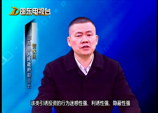 同时,充分利用办公场所、金融机构营业网点等线下载体,结合新闻媒体、微信、微博等线上载体,通过在邵东电视台定时播出副市长(2019年初,时为副县长)贺铁民防范非法集资、电信诈骗讲话、定期发布工作动态、滚动播放电子标语、张贴横幅海报、发放宣传手册等方式,将电信诈骗的方式方法、严重危害、举报奖励政策和举报渠道“广而告之”,帮助群众认识电信诈骗花样翻新的“伎俩”,鼓励社会公众互相提醒,积极举报,让不断变异的电信诈骗无处遁形。