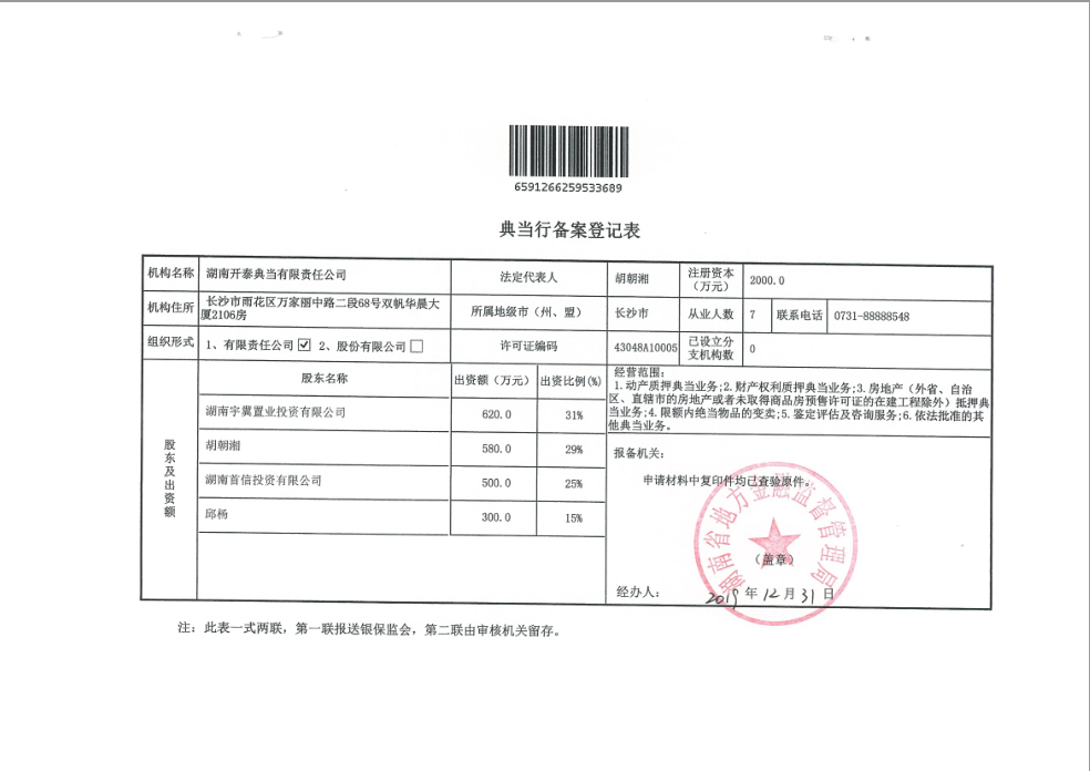 你公司上报的变更申请报告及相关材料收悉。根据《典当管理办法》和《公司法》有关法律法规的规定及长沙市金融办的初审意见,经审核,同意你公司经营地址由“长沙市雨花区长沙大道567号运达中央广场商务综合楼N单元21层21001号”变更为“长沙市雨花区万家丽中路二段68号双帆华晨大厦2106房”。