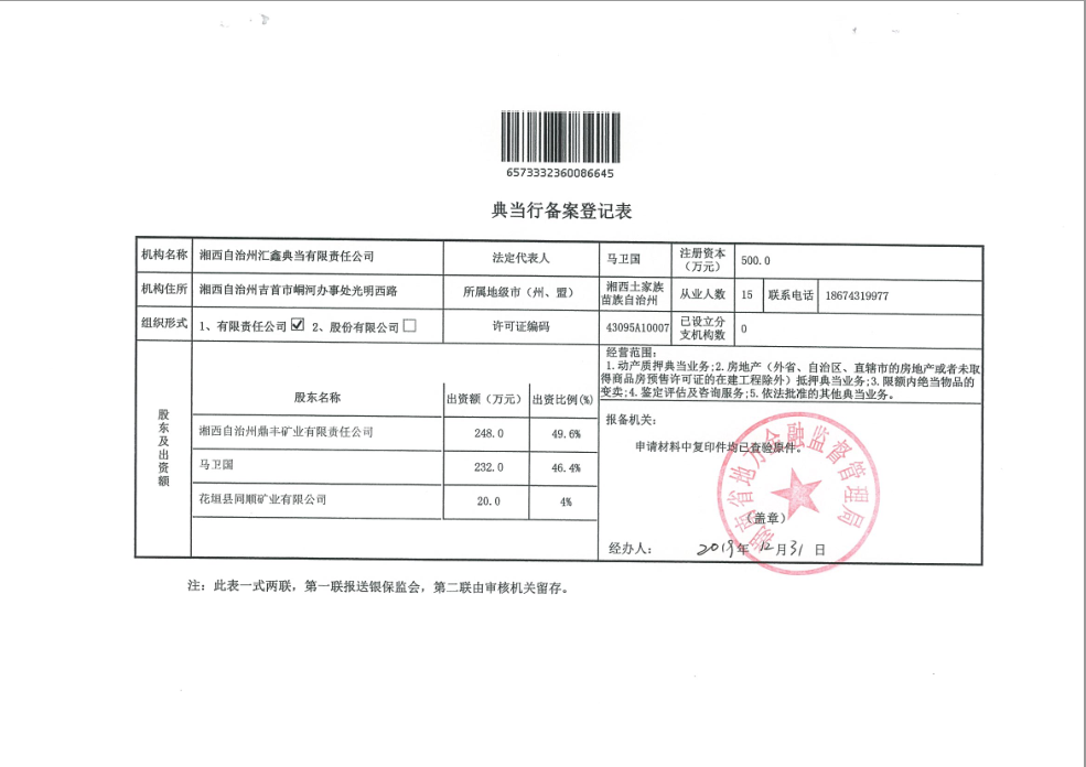 你公司上报的变更申请报告及相关材料收悉。根据《典当管理办法》和《公司法》有关法律法规的规定及湘西自治州人民政府金融工作办公室的初审意见,经审核,现批复如下: