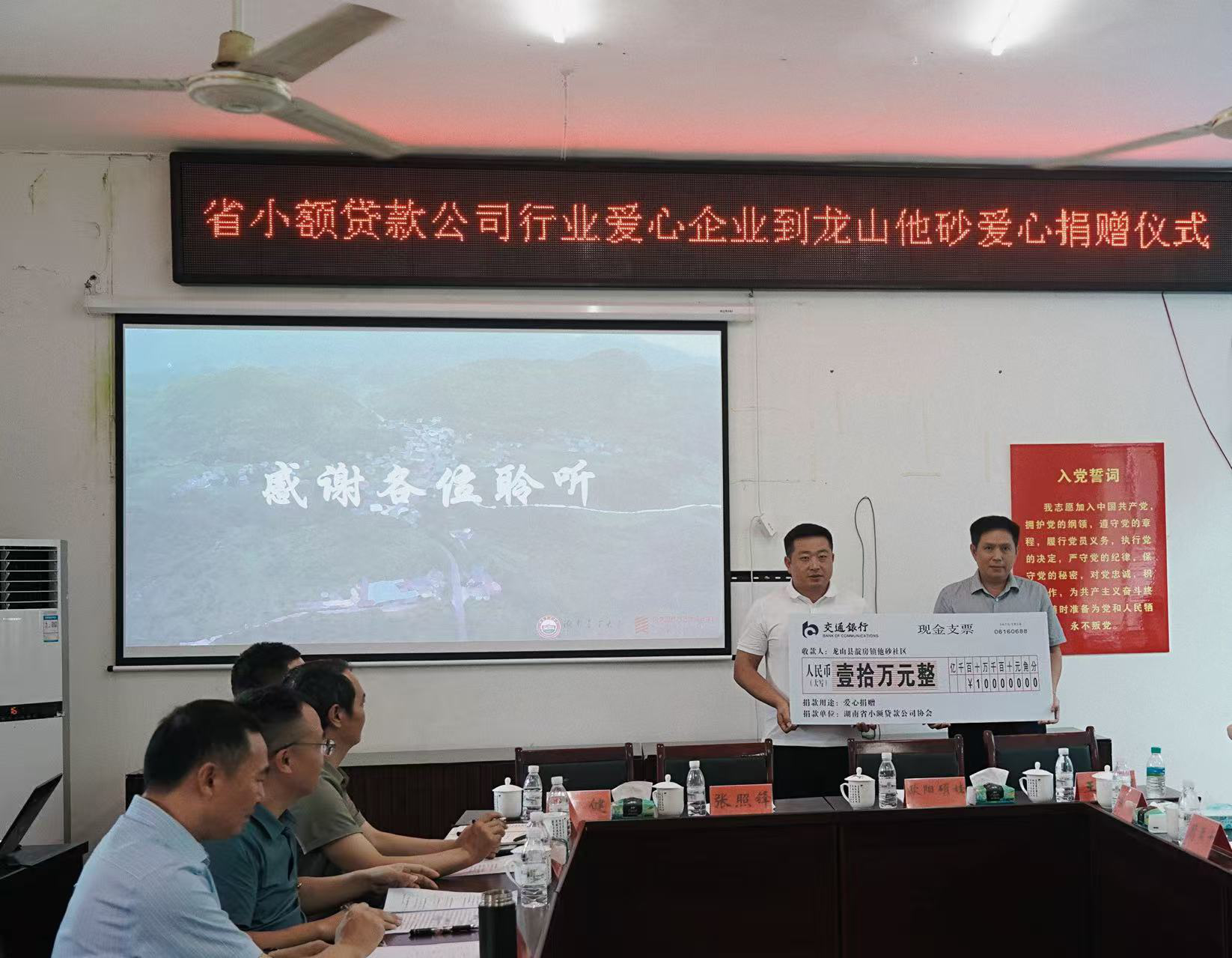 近日,省委金融办监管二处党支部联合湖南省小额贷款公司协会党支部及部分小贷公司党支部,奔赴刚刚经历“6·18”特大暴雨灾害的龙山县靛房镇他砂社区,开展主题党日暨爱心捐赠活动,为社区灾后重建和乡村振兴注入“金融暖流”。龙山县有关负责同志参加活动。