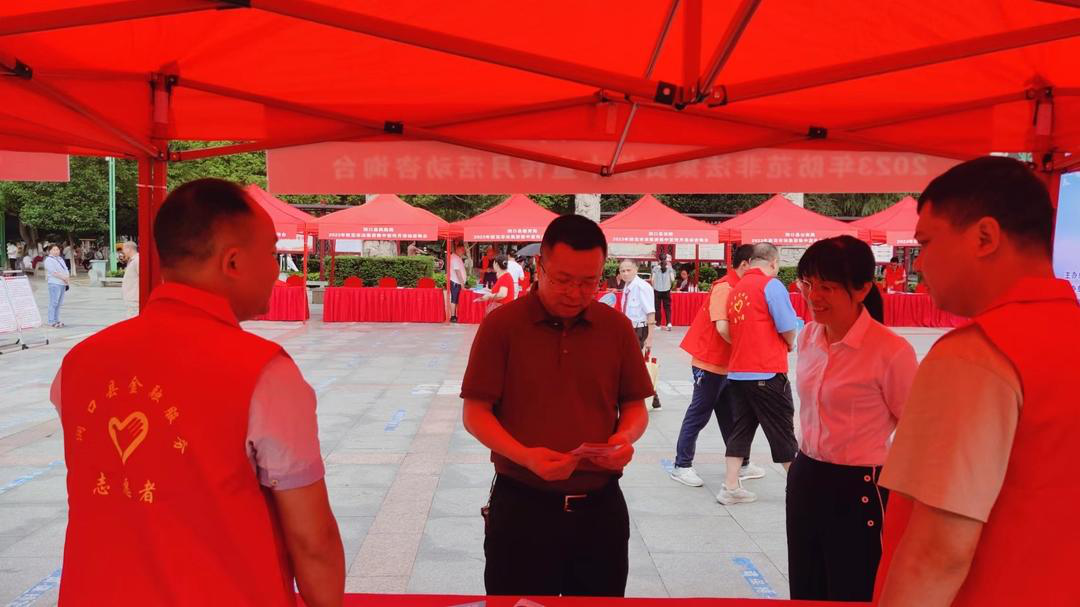 今年6月是全国第11个防范非法集资宣传月。6月15日,我县围绕“守住钱袋子•护好幸福家”主题,在县城法治文化广场集中开展防范非法集资宣传活动,全面推进防范非法集资宣传教育工作,守护人民群众“钱袋子”,当好群众金融安全“守门员”。县委常委、常务副县长罗颢到场指导。