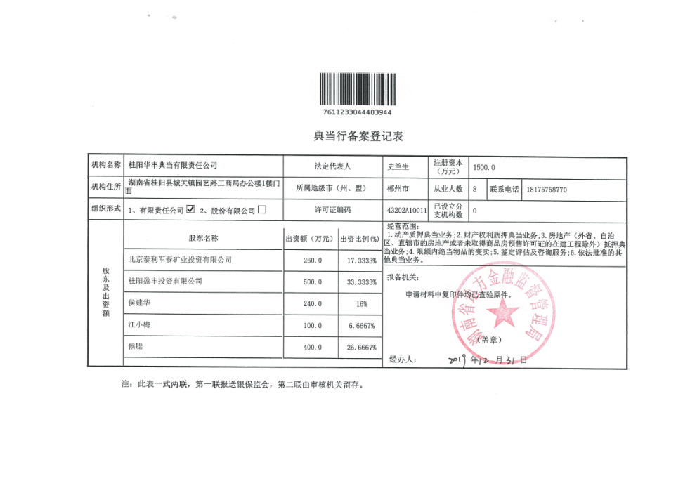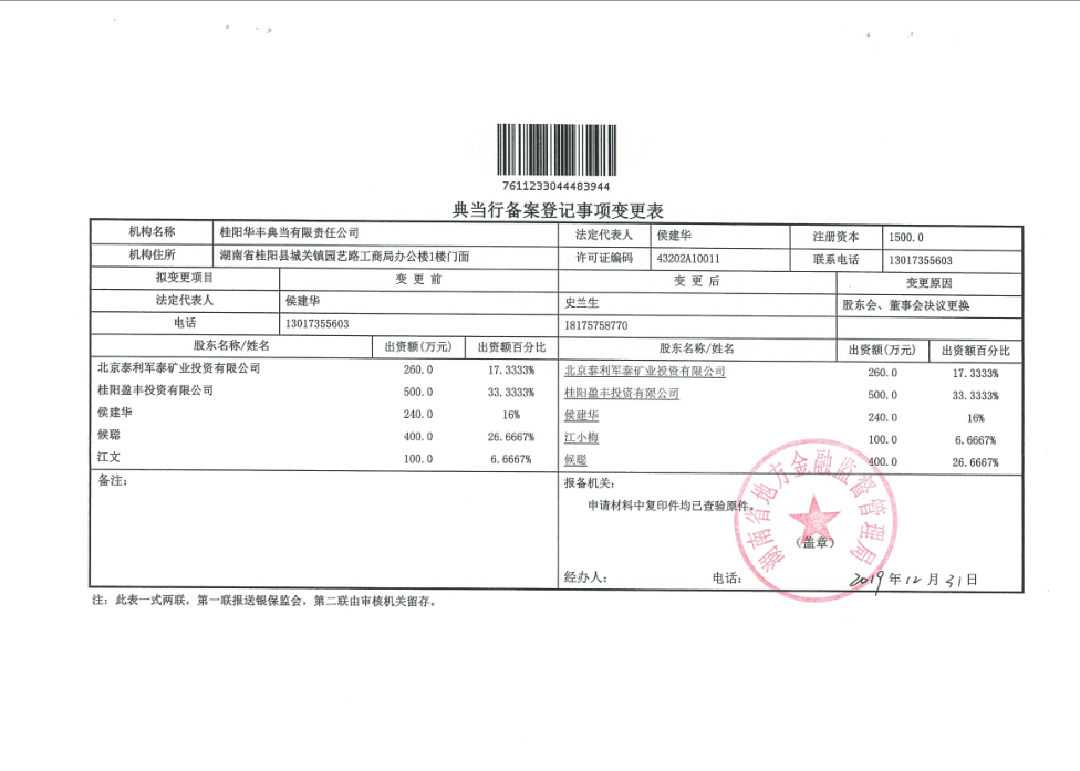 湖南省地方金融监督管理局关于同意桂阳华丰典当有限责任公司变更有关事项的批复