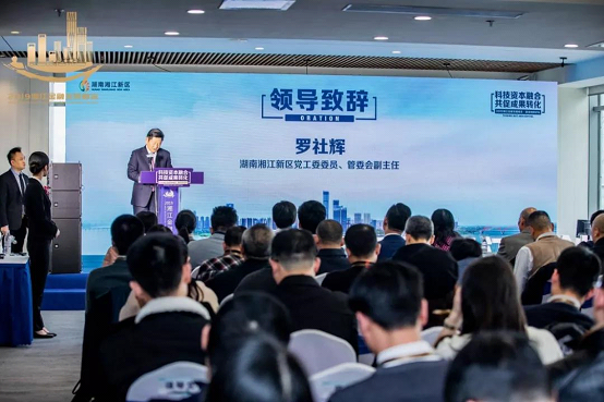 会上,湖南湘江新区党工委委员、管委会副主任罗社辉首先对各位领导、嘉宾的到来表示热烈欢迎。他谈到,湖南湘江新区承担了“三区一高地”的重要使命,以“产业转型、动能转换”为主体目标,以高端制造业、高技术服务业为发展两翼,着力打造高端制造研发转化和创新创业产业集聚区。“湘江新区产业高端化的过程,是一个资本有效投入的过程、科技创新的过程、产学研金合作的过程。”罗社辉表示政府将竭力优化营商环境,强化政策支持,打造金融科技产业发展高地,欢迎广大机构和企业入驻飞速发展中的湖南金融中心。