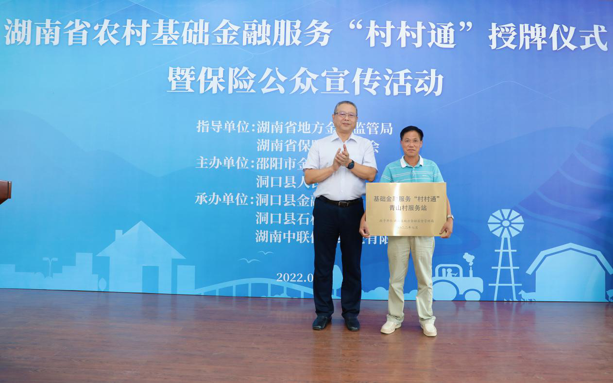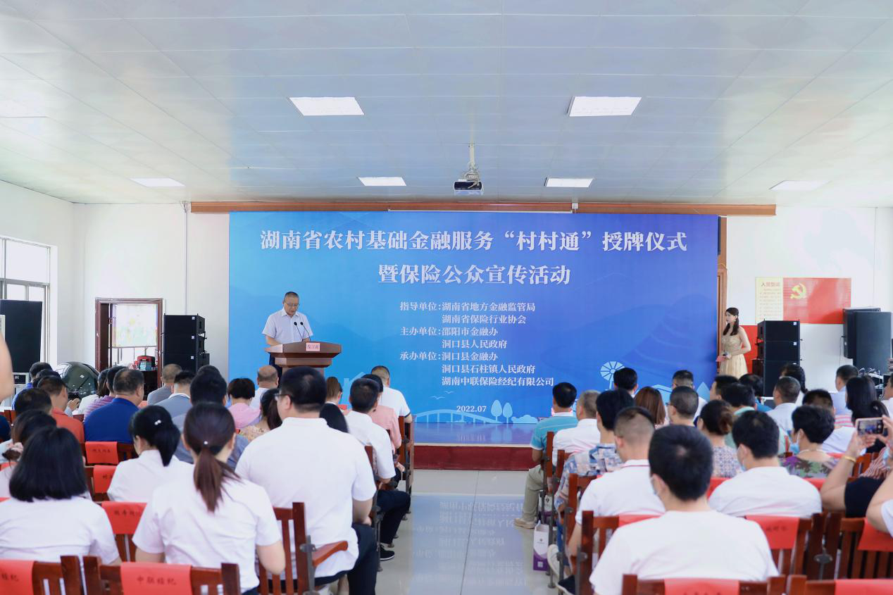 7月29日,邵阳市洞口县石柱镇青山村成功举行了湖南省农村基础金融服务“村村通”授牌仪式暨保险公众宣传活动。该活动由省地方金融监管局、省保险行业协会指导,邵阳市金融办、洞口县人民政府主办,洞口县金融办、石柱镇人民政府、湖南中联保险经纪有限公司承办。
