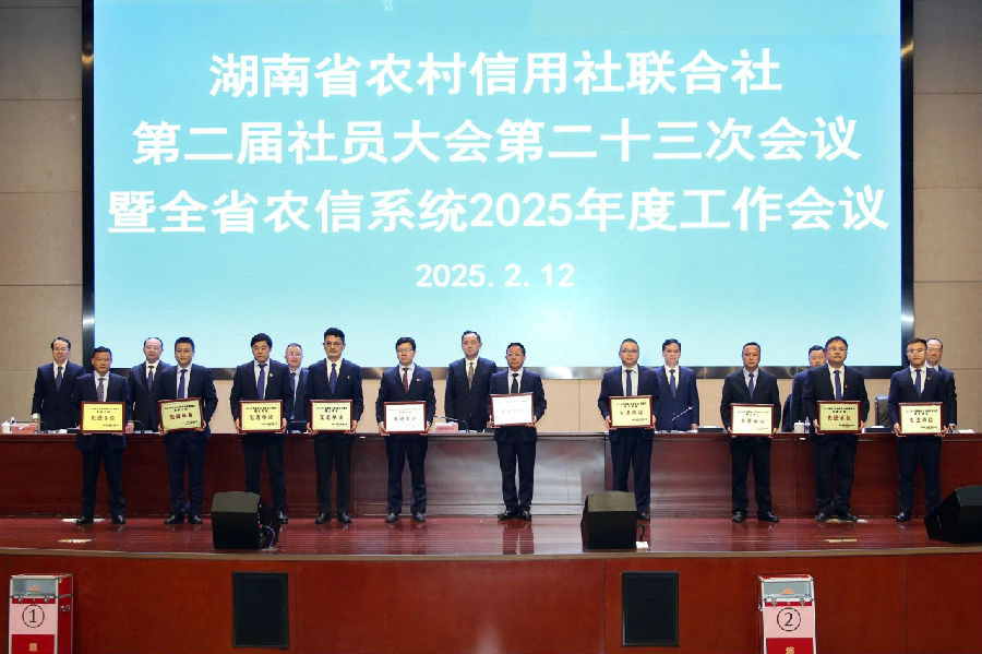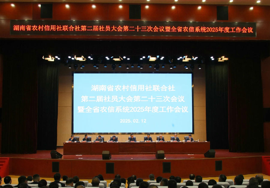 2月12日,湖南省农村信用社联合社第二届社员大会第二十三次会议暨2025年度工作会议在长沙召开。副省长王俊寿出席并讲话,省农信联社党委书记、理事长黄向阳作了题为《守护普惠金融深化改革创新努力在谱写中国式现代化湖南篇章中开创农信系统高质量发展新局面》的工作报告,并传达学习了省领导批示精神。党委副书记、副理事长、主任蒋俊文主持会议并作总结讲话。党委副书记刘胜军宣读了有关表彰决定。省农信联社领导徐达华、王文芳、刘浩、谢扶民出席会议。