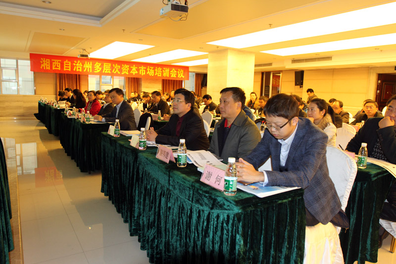 为抢抓政策机遇,助力金融扶贫,加快多层次资本市场建设,推动区域内优质企业与资本市场对接,湘西州人民政府于11月23日在吉首召开湘西州多层次资本市场培训会议。会议邀请到了沪深交易所等权威机构的专家,讲授如何有效利用资本市场融资,帮助州内的更多单位、企业了解和认识资本市场,提高企业资本运作能力,破解融资难,融资贵等问题。州委常委、副州长房卫出席会议并作讲话,州政协副主席石红、州政府州长助理葛红玲、州政府副秘书长骆邦建等领导出席了会议,州直相关部门、州级融资平台公司和县市区及县市区相关部门、县市融资平台的负责人,州内拟上市及拟挂牌后备企业和重点企业的高管等150余人参加会议。