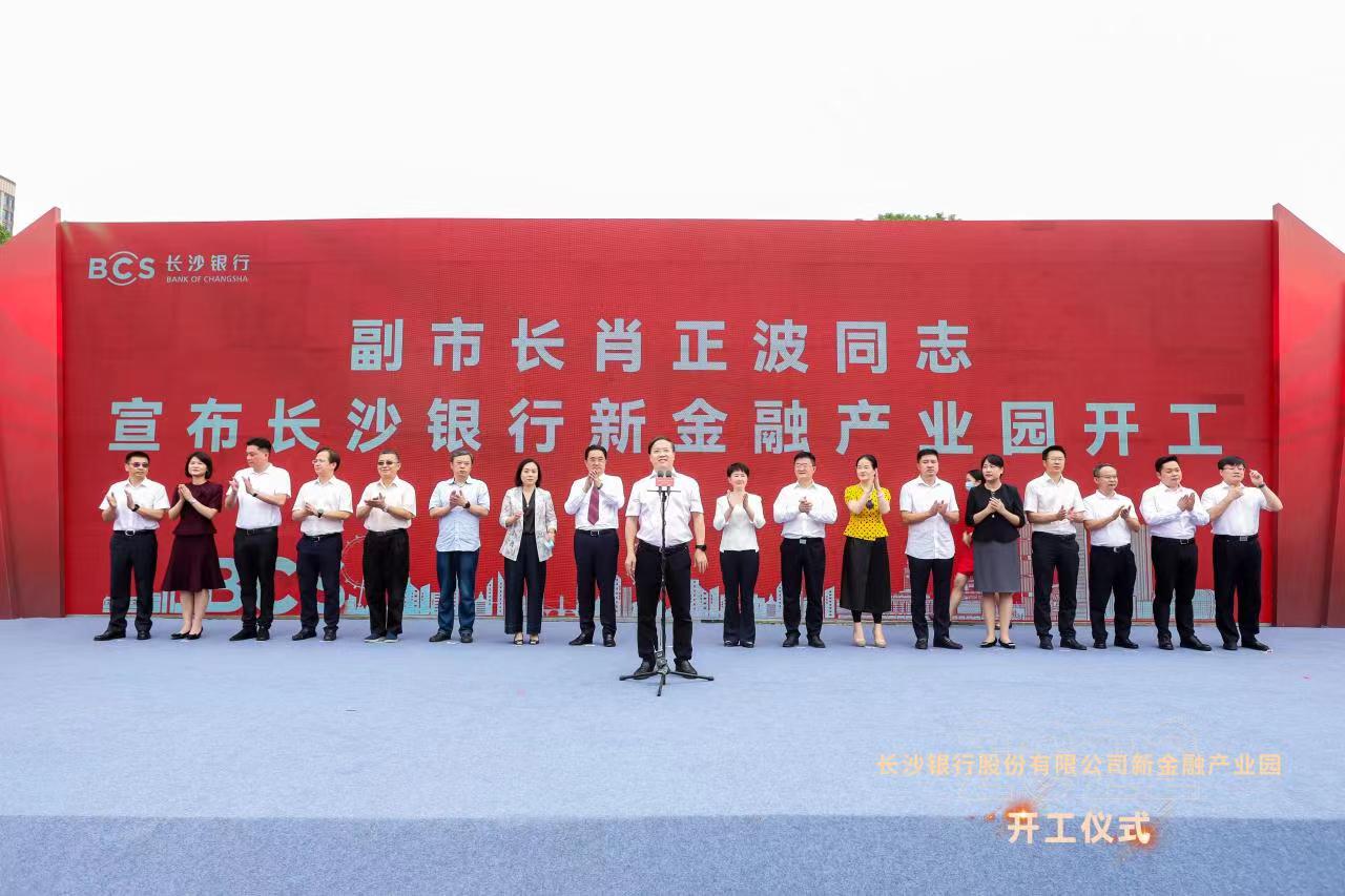 2022年9月26日上午,长沙银行新金融产业园举行开工仪式,该项目位于长沙市开福区金霞片区核心区域,用地面积64.5亩,定位为企业金融服务中心和创新研发中心,以数据生产、科技研发、集中作业、员工培训为主要功能,同时涵盖基础办公、档案管理、子公司、分支机构等营业办公功能,项目建成后,总建筑面积超过24万平方米,进驻办公人员超过5000人,将打造成为省内一流、中部领先的金融产业园。肖正波等市领导及市相关部门领导,罗玉环、高伟、晏成方、欧干军、蔡冰、黎明、朱江、蒋君、易文斌、张胜良、江璜等区领导及相关职能部门负责人参加了开工仪式。