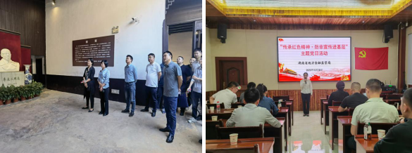 活动第一站,全体党员来到李立三故居,认真观看一张张弥足珍贵的历史照片,仔细倾听李立三同志的红色故事,详细了解他一心向党并为之奋斗终身的光辉历程。在李立三故居,党员同志们聆听了以左权、耿飚同志为主线的微党课,学习老一辈无产阶级革命家坚定的理想信念,不怕牺牲的精神和忘我奋斗的作风。