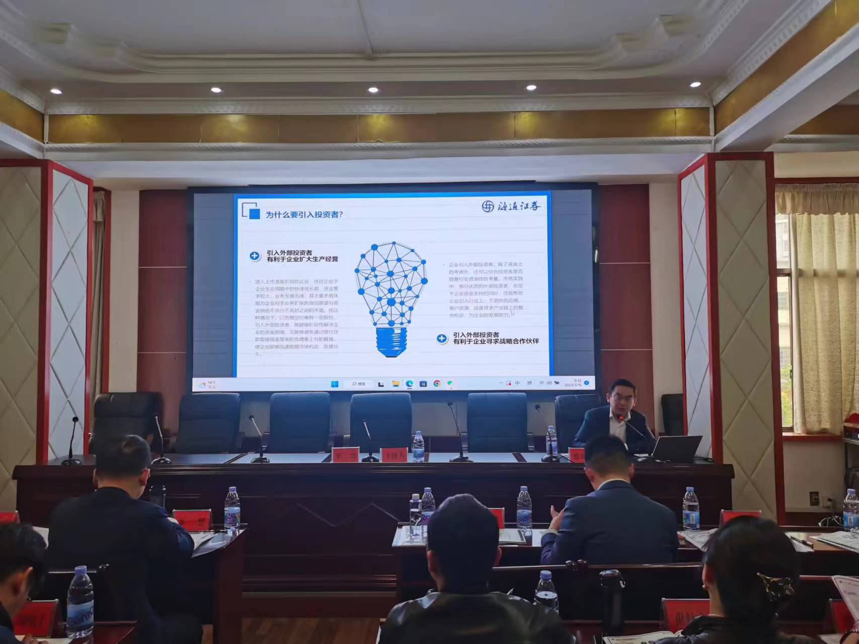 为积极响应省政府“金芙蓉”跃升行动计划,推动企业上市工作出实招、见实效,3月16日上午,赫山区举行企业上市工作培训会,会议邀请了海通证券、启元律师事务所、天健会计事务所的3位专家授课以及全区27家企业,区人民政府副区长李想出席并主持会议。