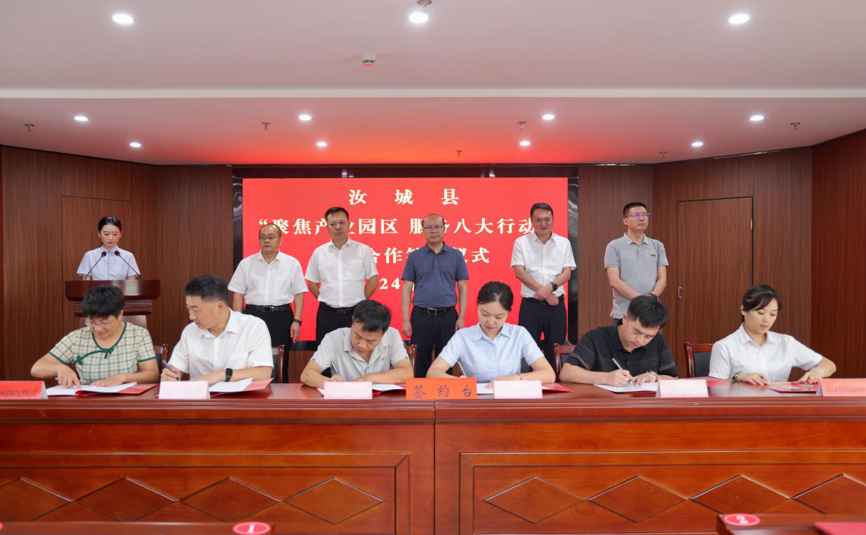 7月9日,郴州市汝城县2024年“聚焦产业园区服务八大行动”金融服务月活动银企合作签约仪式在汝城县经济开发区举行,24家企业代表与8家银行机构现场签订合作协议。县委副书记、县长文建军出席并讲话。
