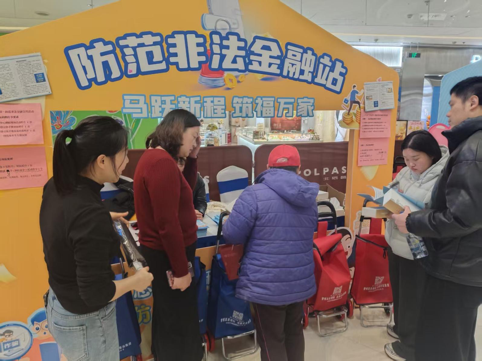 周末的开福区北辰荟商场以巨大的人流量为本次宣传活动提供了良好的展示平台与传播场景,现场氛围热烈、人气高涨,开福区金融事务中心设立专属宣传展位,摆放防范非法金融活动主题展板,悬挂宣传横幅,工作人员化身“金融宣传员”,提醒群众提高警惕,摒弃“一夜暴富”的侥幸心理,守住“钱袋子”、护好幸福家。引导群众树立理性投资、科学理财的理念,增强自身金融素养和风险防范意识。