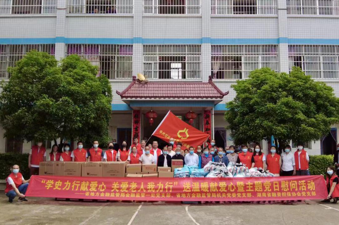 为进一步深化“我为群众办实事”成效,让人民群众切实感受到开展党史学习教育带来的实效,5月7日上午,省地方金融监管局金融监管一处党支部、机关党委党支部联合省融资担保协会党支部赴宁乡市偕乐桥镇敬老院开展“学史力行献爱心,关爱老人我先行”主题党日慰问活动。