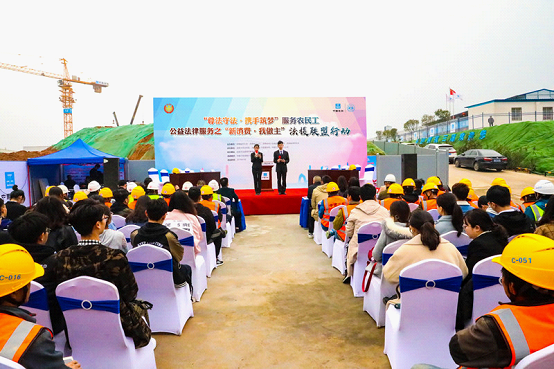 在第36个“国际消费者权益日”来临之际,湖南省总工会、湖南省司法厅、湖南省地方金融监督管理局、湖南省律师协会携手湖南大学、中建三局联合开展“尊法守法·携手筑梦”公益法律服务之“新消费·我做主”法援联盟行动。